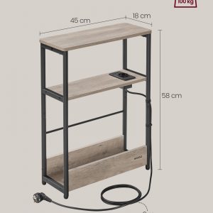 Maximiza el potencial de tus espacios más pequeños con nuestra Mesa Auxiliar con Estación de Carga Integrada, diseñada específicamente para ajustarse a espacios estrechos y proporcionar funcionalidad adicional a tu sala de estar o dormitorio. Este mueble no solo es una pieza elegante que se adapta perfectamente al lado de tu sofá o cama, sino que también ofrece una solución práctica para cargar dispositivos y almacenar objetos cotidianos.