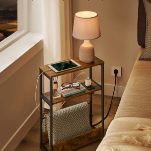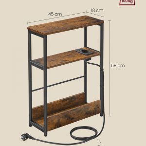 Maximiza el potencial de tus espacios más pequeños con nuestra Mesa Auxiliar con Estación de Carga Integrada, diseñada específicamente para ajustarse a espacios estrechos y proporcionar funcionalidad adicional a tu sala de estar o dormitorio. Este mueble no solo es una pieza elegante que se adapta perfectamente al lado de tu sofá o cama, sino que también ofrece una solución práctica para cargar dispositivos y almacenar objetos cotidianos.