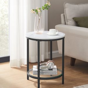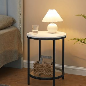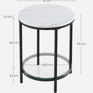 Descubre la fusión perfecta del minimalismo moderno y la elegancia atemporal con nuestra mesa auxiliar. Su marco negro clásico y líneas limpias se complementan a la perfección con una encimera de mármol blanco y un estante de vidrio, inyectando un toque único y personal a tu espacio.