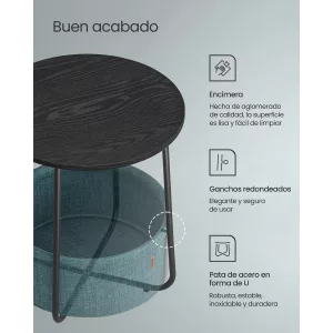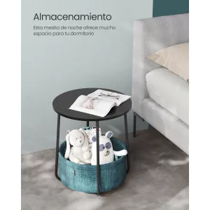 Adecuada para Espacios Pequeños: Con dimensiones de 45 x 50 cm para la mesa y una cesta de 39,6 x 18,2 cm, esta mesa es ideal para espacios reducidos. Funciona perfectamente como mesa auxiliar en el salón o como mesita de noche en el dormitorio, proporcionando mucho espacio para tus artículos esenciales.
