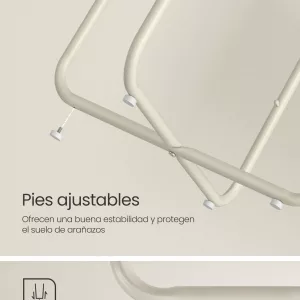 Robusta y Estable: El tablero de aglomerado de alta calidad está firmemente sujeto a una estructura de acero en forma de U, lo que garantiza estabilidad y resistencia. Los pies ajustables aseguran que la mesa permanezca nivelada y no raye el suelo.