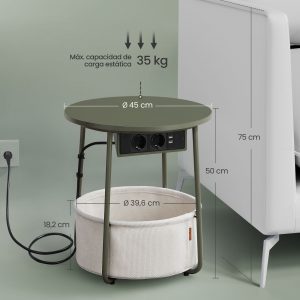 Adecuada para Espacios Pequeños: Con dimensiones de 45 x 50 cm para la mesa y una cesta de 39,6 x 18,2 cm, esta mesa es perfecta para espacios reducidos. Ya sea como mesa auxiliar en el salón o como mesita de noche en el dormitorio, ofrece un espacio práctico sin ocupar demasiado lugar.
