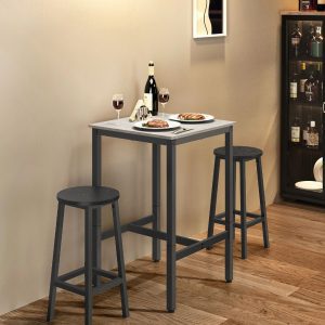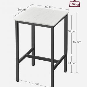 Mesa bar cuadrada alta, estilo industrial, blanco vintage