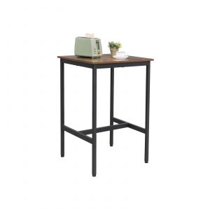 El diseño limpio y el estilo industrial de la mesa aportan un toque rústico a tu espacio. Además, se recomienda complementarla con taburetes de bar (no incluidos) de aproximadamente 61-66 cm de altura, que encajarán perfectamente debajo de la mesa, proporcionando una solución completa para tu área de comedor.
