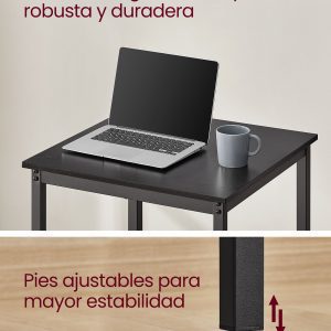 La barra inferior larga no solo añade un toque estilizado, sino que también proporciona un cómodo lugar para apoyar los pies mientras disfrutas de tu comida o bebida. Las patas ajustables eliminan cualquier bamboleo en suelos ligeramente irregulares y evitan daños en el suelo, garantizando una experiencia de uso sin preocupaciones.