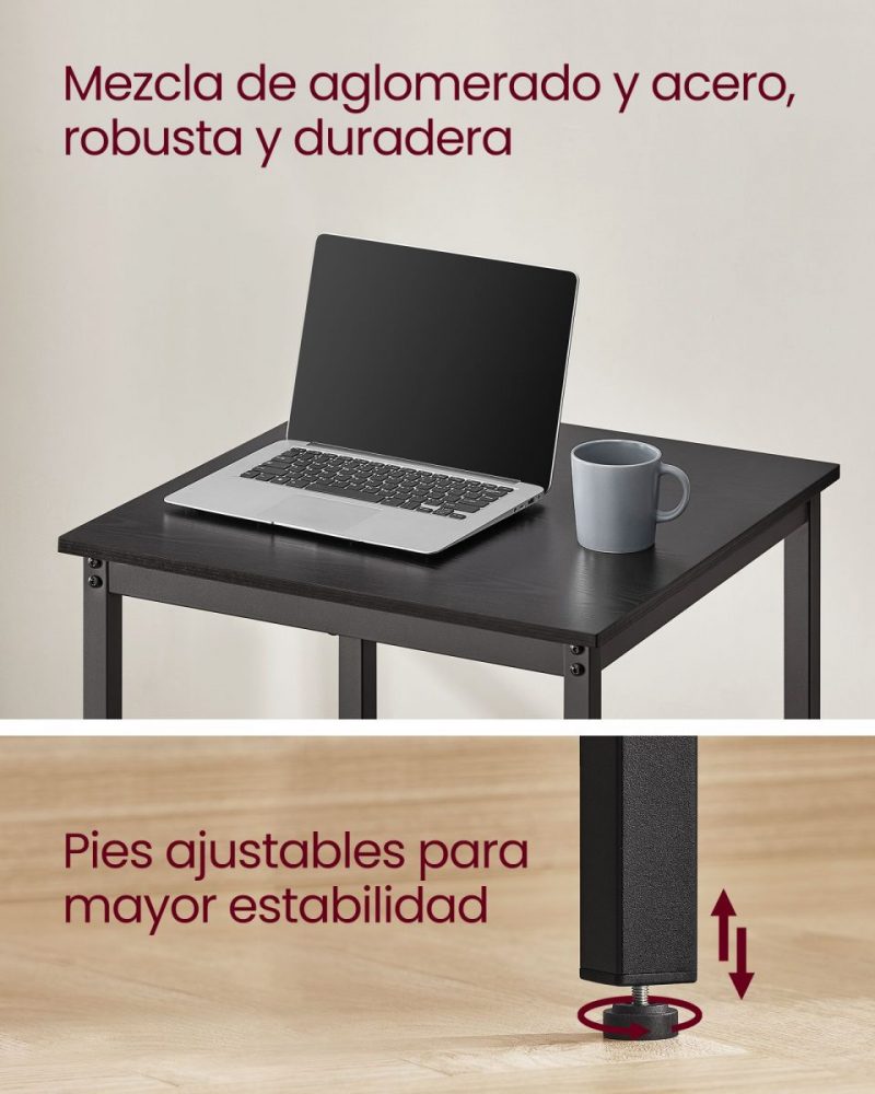 Transforma tu área de comedor con nuestra mesa de bar que combina durabilidad y estilo industrial. Con un sólido marco de acero y tablero de aglomerado, esta mesa garantiza estabilidad y resistencia, soportando hasta 100 kg de peso.