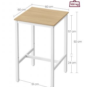 Esta mesa alta cuadrada es la elección perfecta para diversos usos. Ya sea como mesa de desayuno, mesa de comedor o mini mesa de café, su tamaño compacto de 60 x 60 x 92 cm permite que se ajuste fácilmente en pequeñas cocinas, rincones de repuesto o junto a la ventana, brindándote flexibilidad para adaptarla a tus necesidades.