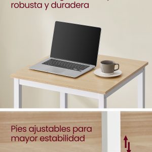 Transforma tu área de comedor con nuestra mesa de bar que combina durabilidad y estilo industrial. Con un sólido marco de acero y tablero de aglomerado, esta mesa garantiza estabilidad y resistencia, soportando hasta 100 kg de peso.