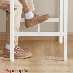 La barra inferior larga no solo añade un toque estilizado, sino que también proporciona un cómodo lugar para apoyar los pies mientras disfrutas de tu comida o bebida. Las patas ajustables eliminan cualquier bamboleo en suelos ligeramente irregulares y evitan daños en el suelo, garantizando una experiencia de uso sin preocupaciones.