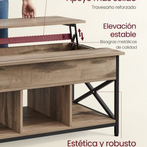 Mesa centro con tablero elevable, almacenamiento, marrón roble
