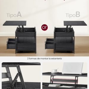 Agrega funcionalidad y estilo a tu sala de estar con esta versátil mesa de centro elevable.
