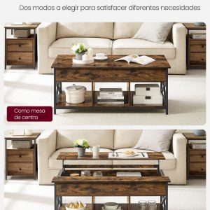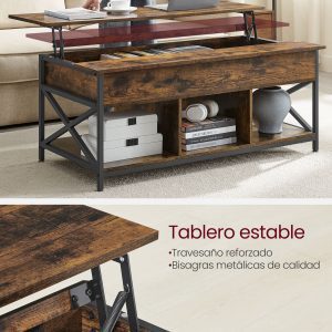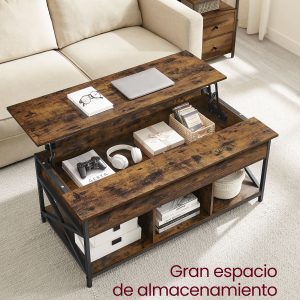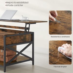 Mesa centro elevable, espacio abierto y oculto, marrón rústico