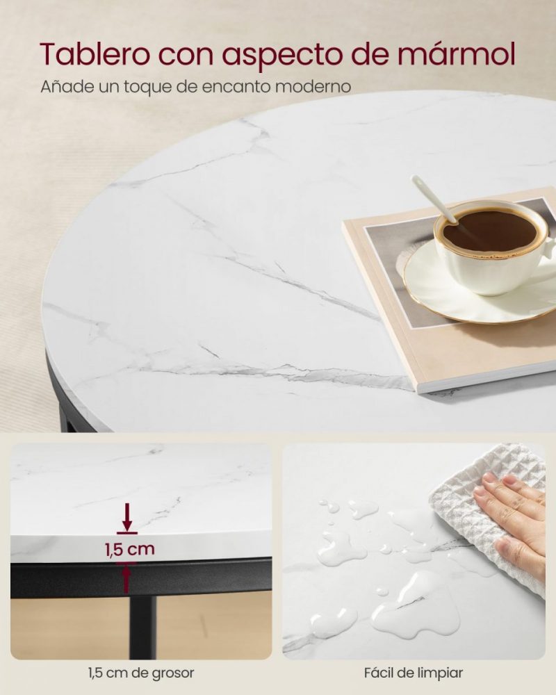 Montaje Sencillo: Gracias a sus instrucciones claras y piezas etiquetadas, ensamblar esta mesa de centro es extremadamente fácil, permitiéndote disfrutar de tu nuevo mueble en poco tiempo.