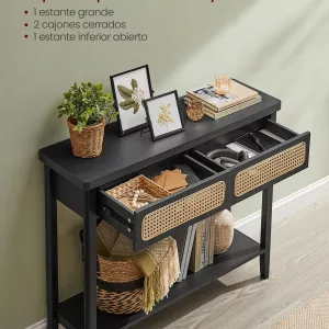 Versatilidad: Ideal para cualquier habitación, esta consola se adapta perfectamente a tu entrada, sala de estar, dormitorio, y más, ofreciendo un espacio adicional para decorar y organizar.