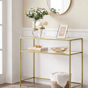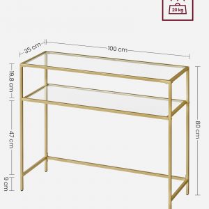 Un tablero de cristal templado de 5 mm de espesor se coloca en el robusto marco metálico de la mesa de consola, ofreciendo un soporte sólido para hasta 20 kg. Ya sea para plantas, decoraciones, libros o marcos de fotos, esta mesa es versátil y elegante al mismo tiempo.