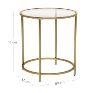 Mesa de centro de cristal y acero en dorado, decorativa, elegante