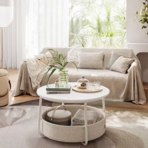 Mesa de Centro Redonda con Cesta de Almacenamiento: Modernidad y Funcionalidad para tu Sala de Estar