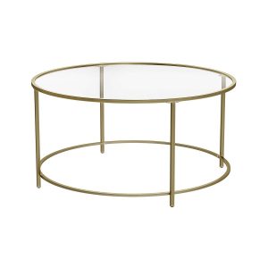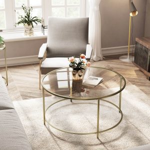 Mesa de Centro de Cristal Dorado: Elegancia y Durabilidad en tu Sala de Estar