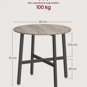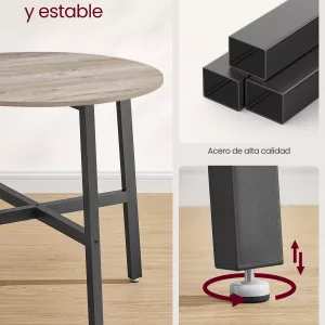Esta mesa redonda, con su marco de acero negro y paneles de madera de estilo rústico, es el complemento perfecto para tu cocina, sala de estar u oficina. Su diseño industrial, pero elegante, añade un toque de clase y versatilidad a cualquier espacio.