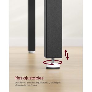 Robusta y Estable: Construida con un resistente marco de acero y tableros de aglomerado de alta calidad, esta mesa rústica está diseñada para perdurar a lo largo de los años. Sus pies ajustables garantizan estabilidad incluso en suelos ligeramente irregulares.