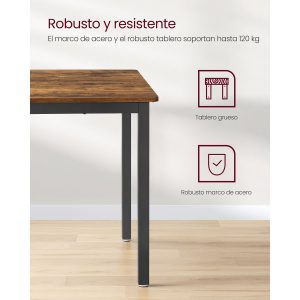 Diseño Industrial Atractivo: La combinación de un tablero marrón rústico y un marco de acero negro mate le confiere un atractivo aspecto industrial a esta mesa de cocina. Añade un toque de estilo a tu comedor.