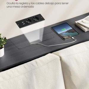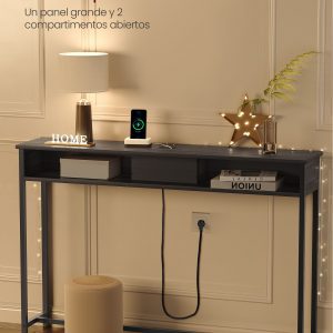 Eleva la funcionalidad y el estilo de tu espacio con nuestra Mesa Consola de Carga, diseñada meticulosamente para adaptarse a las necesidades modernas de conectividad y organización. Equipada con 2 tomas de CA y 2 puertos USB, esta mesa delgada se convierte en el centro de carga ideal para todos tus dispositivos, desde lámparas y teléfonos hasta tabletas y consolas de juegos, todo al alcance de tu mano.