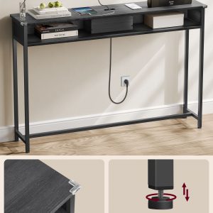 Ya sea en el pasillo como punto de llegada, detrás del sofá para mantener tus dispositivos cargados, o como un elegante expositor de adornos junto a la pared, esta mesa consola satisface una amplia gama de necesidades con su bandeja superior y 2 compartimentos adicionales.
