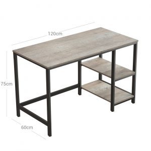 Espacioso y Funcional: Con una amplia superficie de trabajo de 120 x 60 cm y dos estantes prácticos, ofrece amplio espacio para tus dispositivos, libros y documentos. El estante central ajustable se adapta a tus necesidades, perfecto para alojar una unidad central o para proporcionar espacio adicional.
