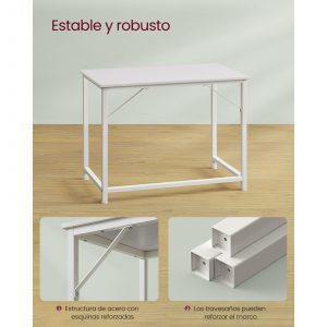 Con puntales de acero estratégicamente ubicados bajo la superficie, este escritorio garantiza una estabilidad excepcional. Soporta hasta 50 kg, permitiéndote organizar tu laptop, archivos y libros sin esfuerzo.