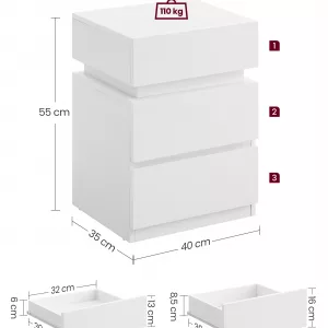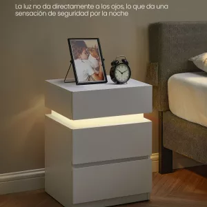 Nuestra Mesita de Noche con LED Ajustable, una pieza moderna que combina funcionalidad y estilo. Con su luz LED ajustable, gran capacidad de almacenamiento y diseño versátil, esta mesita de noche es perfecta para crear un ambiente acogedor y organizado en cualquier habitación de tu hogar. Ideal para el dormitorio, salón o estudio, esta mesa auxiliar se adapta a tus necesidades con facilidad.
