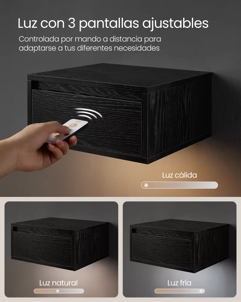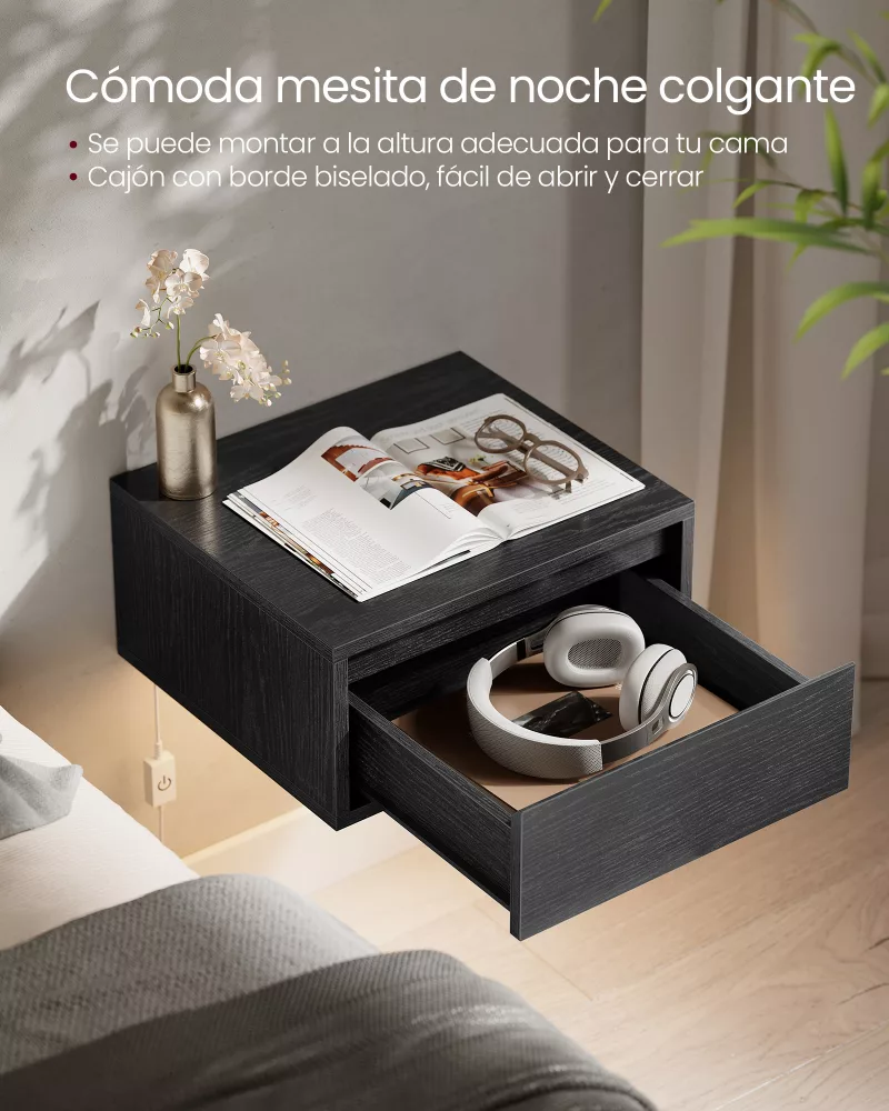 Mesita de Noche Colgante 35 x 40 x 18 cm Negro Ébano