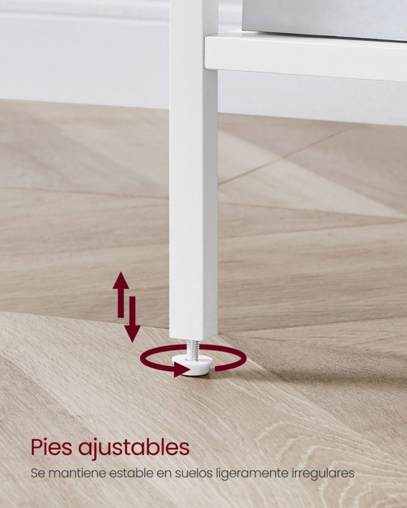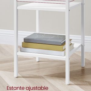 Robustez y Durabilidad: Fabricada con una combinación de tableros de aglomerado y acero, nuestra mesita de noche está diseñada para ofrecer una estructura sólida y estable, con una capacidad de carga total de 40 kg, asegurando una larga vida útil.