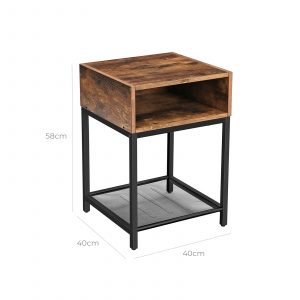 Maximiza tu espacio con nuestra mesa auxiliar, diseñada meticulosamente para ofrecer tres opciones de almacenamiento distintas. Su tablero de color marrón rústico (dimensiones: 40 x 40 cm) es perfecto para sostener tus libros, mandos a distancia o plantas en maceta. Complementada con un amplio compartimento abierto y un estante de malla resistente, esta mesa asegura tener un lugar para cada uno de tus esenciales, combinando funcionalidad con un encanto rústico.