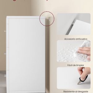 Construido con tablero MDF de alta calidad, este mueble de baño es resistente al desgaste y fácil de limpiar, asegurando una larga vida útil. Su elegante color Blanco Nube se complementa con un accesorio antivuelco, que proporciona estabilidad adicional para una mayor seguridad en tu baño.