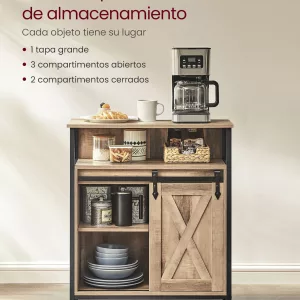 Ofreciendo versatilidad, este armario te permite almacenar en la parte superior, en el compartimento abierto y en el armario inferior. La puerta deslizable te permite ocultar la parte izquierda o derecha según tus preferencias, y la altura del tablero interno es ajustable.