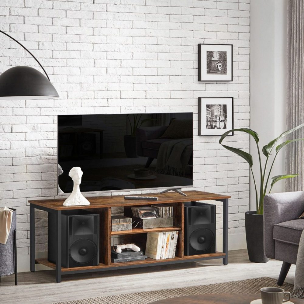 Espacio de Almacenamiento Generoso: La amplia superficie superior de 120 x 40 cm, junto con 2 estantes abiertos en el centro y 2 adicionales en los lados, ofrece el espacio perfecto para tus dispositivos de entretenimiento, películas, cajas y otros accesorios.
