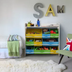 Un Área de Juego Limpia: Con esta unidad de almacenamiento, los juguetes, libros y artículos de papelería ya no estarán dispersos por el suelo. Los pequeños podrán encontrar el lugar adecuado para cada uno de sus tesoros, manteniendo el área de juego limpia y segura.