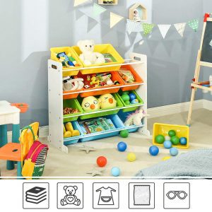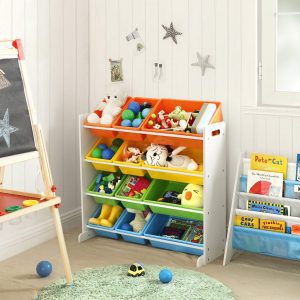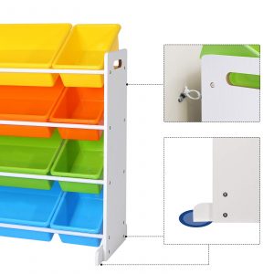Dale a la habitación de tu hijo un toque de color y alegría con nuestra estantería para juguetes, diseñada pensando tanto en el medio ambiente como en la seguridad. Fabricada con tablero MDF de alta calidad y cajas de plástico PP, esta estantería no solo es resistente y estable gracias a sus patas ensanchadas y reforzadas, sino que también es segura, con un dispositivo de fijación incluido que previene cualquier accidente.