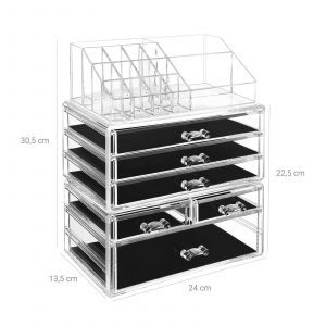Diseñado para ofrecer la máxima funcionalidad con un toque estético, este organizador es ideal para almacenar todos tus cosméticos, joyas y utensilios de belleza de manera ordenada y accesible. Hecho de material acrílico resistente al agua y a la humedad, es perfecto para usar en el baño o en cualquier otro espacio de tu hogar.
