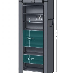 Descripción: Diez niveles: Ideal para el óptimo almacenamiento de zapatos y textiles Conectores de plástico: áspera y fácil de configurar y también se pueden utilizar de nuevo Tela no tejida: transpirable, flexible y resistente a la humedad Tubo de acero de alta calidad: la superficie lisa, resistente a la corrosión y resistente al desgaste Cremalleras: para facilitar la fácil apertura y cierre de puertas Es ideal para ahorrar espacio en su armario y para ayudarle a mantener los zapatos organizados. Todos los estantes presentan una apertura delantera para permitir un fácil acceso. También, facilita buen adorno para su hogar