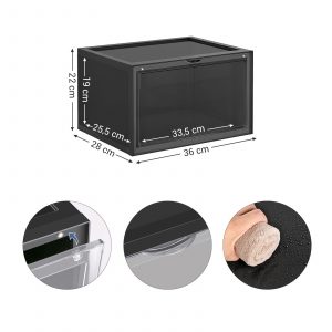 Cada caja, con dimensiones internas de 33,5 x 25,5 x 19 cm, es lo suficientemente espaciosa para acomodar zapatos hasta la talla 46. Desde zapatillas de deporte hasta botines, todas tus opciones tienen cabida aquí. Además, el montaje es un proceso simple, con instrucciones claras para ensamblar tus nuevas cajas de almacenamiento rápidamente.