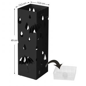 Entrega: 1 x Paragüero metálico 1 x Plato de plástico 2 x Ganchos