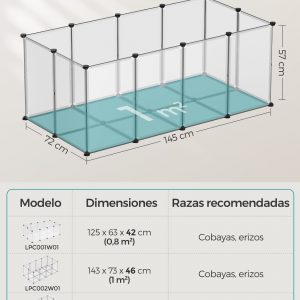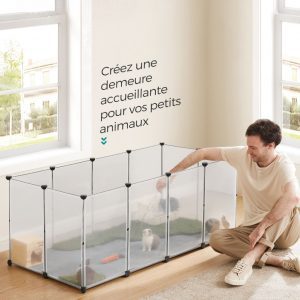 Crea un espacio seguro y estimulante para tus mascotas pequeñas con nuestro parque de juego modular. Diseñado pensando en la comodidad de tus cobayas, hámsters, erizos, o conejos, este recinto ofrece el equilibrio perfecto entre diversión y seguridad, garantizando un entorno donde puedan jugar, explorar y descansar a gusto.