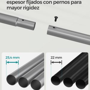 Estructura Resistente y Duradera: Tubos de acero de 25,4 mm de diámetro para soportar hasta 40 kg en la barra superior.