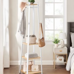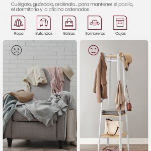 Gracias a su diseño que ahorra espacio, este perchero se adapta perfectamente incluso en pasillos pequeños. Además, se ve elegante en la esquina de la sala de estar, añadiendo funcionalidad y estilo.