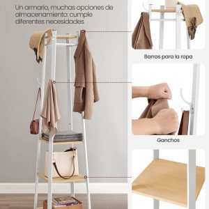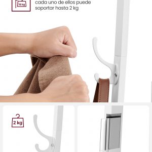 Utiliza la cesta de almacenamiento en los estantes, cuelga sombreros en los ganchos superiores, coloca perchas en las varillas de colgar. Además, los ganchos inferiores son ideales para que los niños cuelguen sus abrigos y bolsas de la escuela.