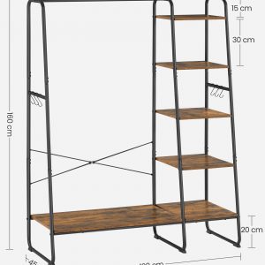 Este perchero no solo optimiza el espacio vertical y horizontal, sino que también combina estilo y funcionalidad en un solo mueble. Equipado con una barra para colgar, un zapatero, cinco estantes de almacenamiento y seis ganchos laterales en forma de S, este mueble es perfecto para mantener ordenados tus abrigos, zapatos, bolsos y más.