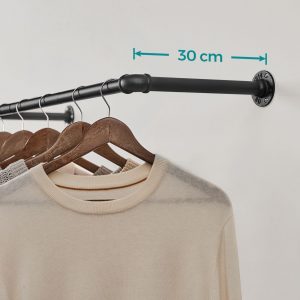 Espacio Generoso para Perchas: Con una distancia de 30 cm entre la pared y la barra de colgar, este soporte proporciona suficiente espacio para la mayoría de las perchas y tipos de ropa, evitando que las prendas se rocen contra la pared.