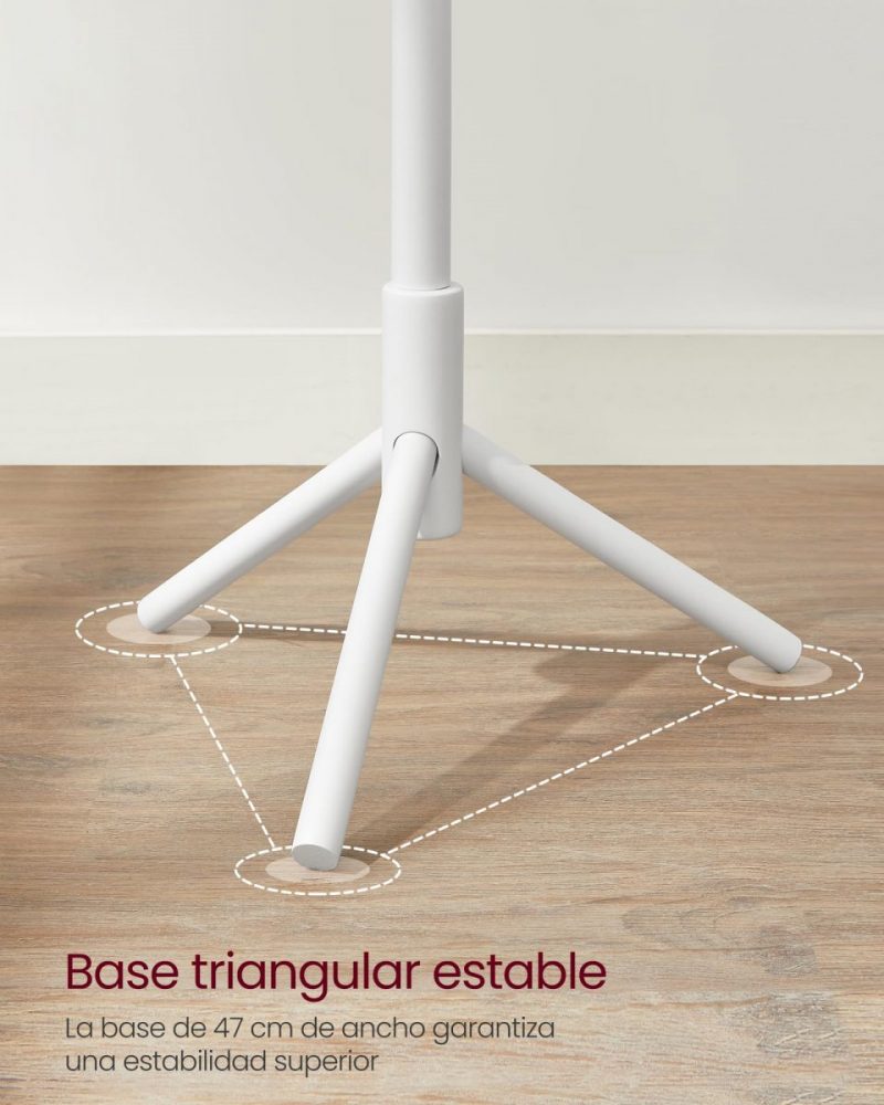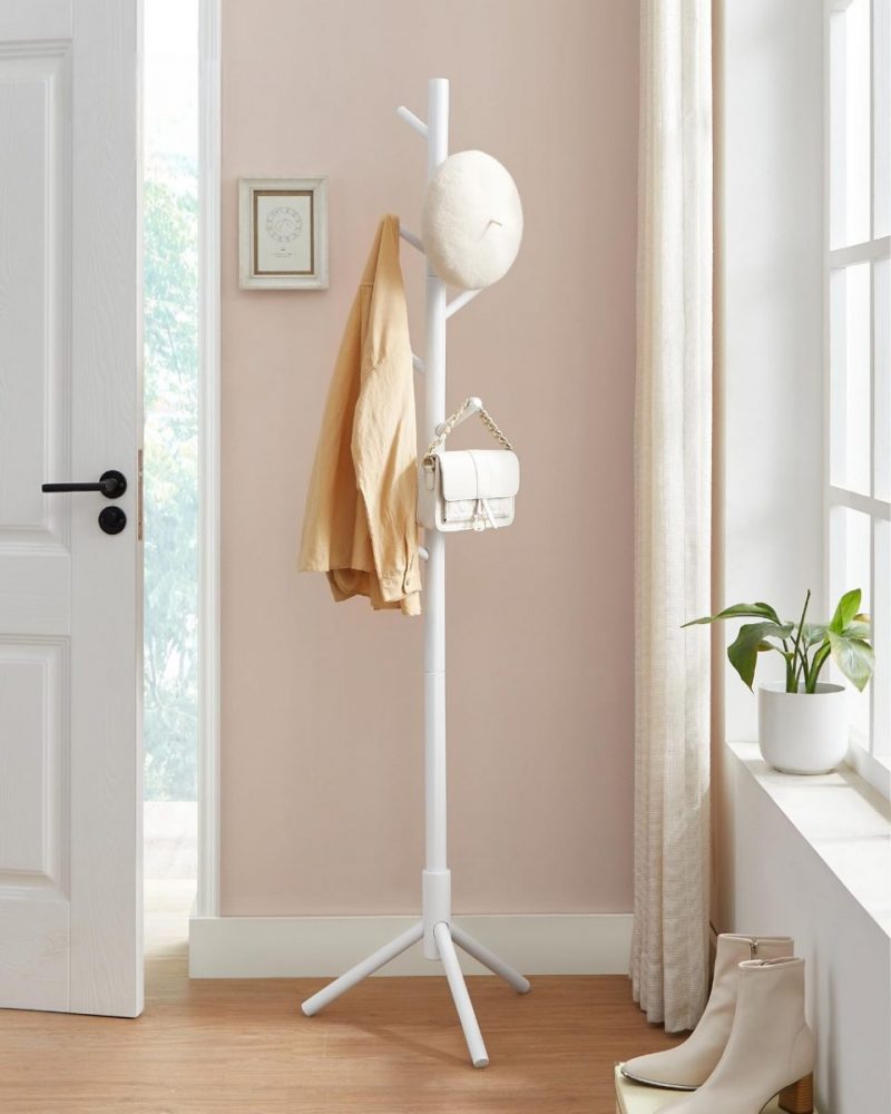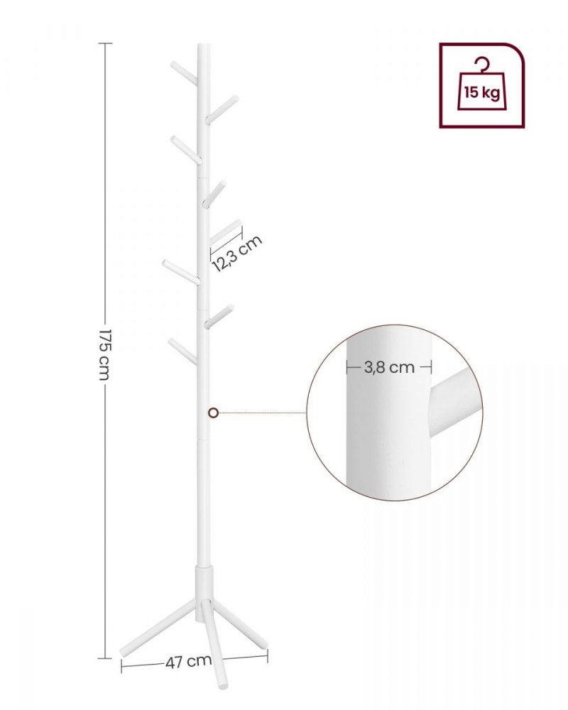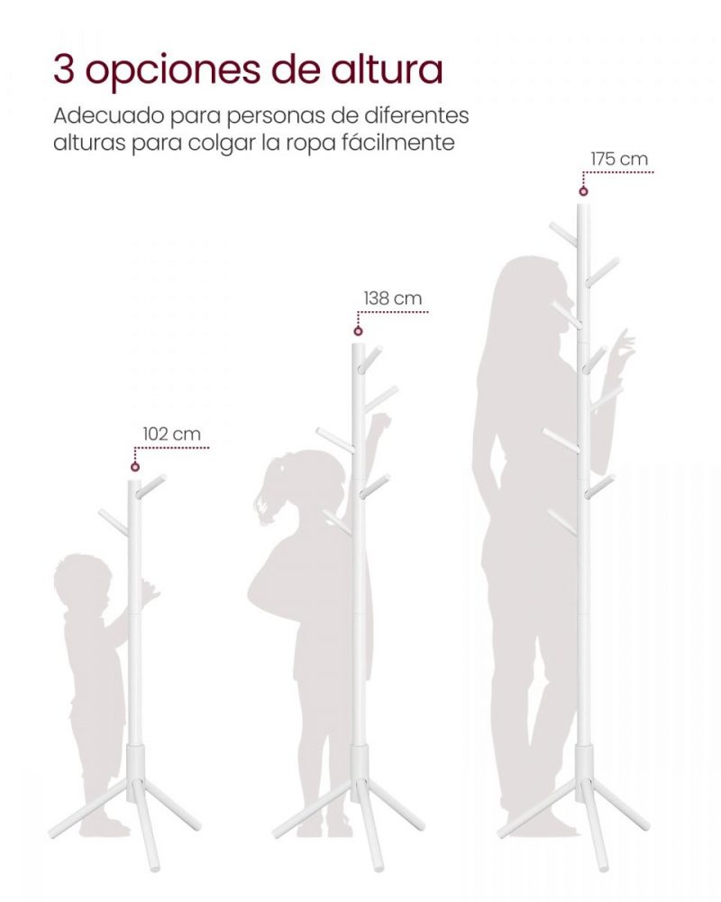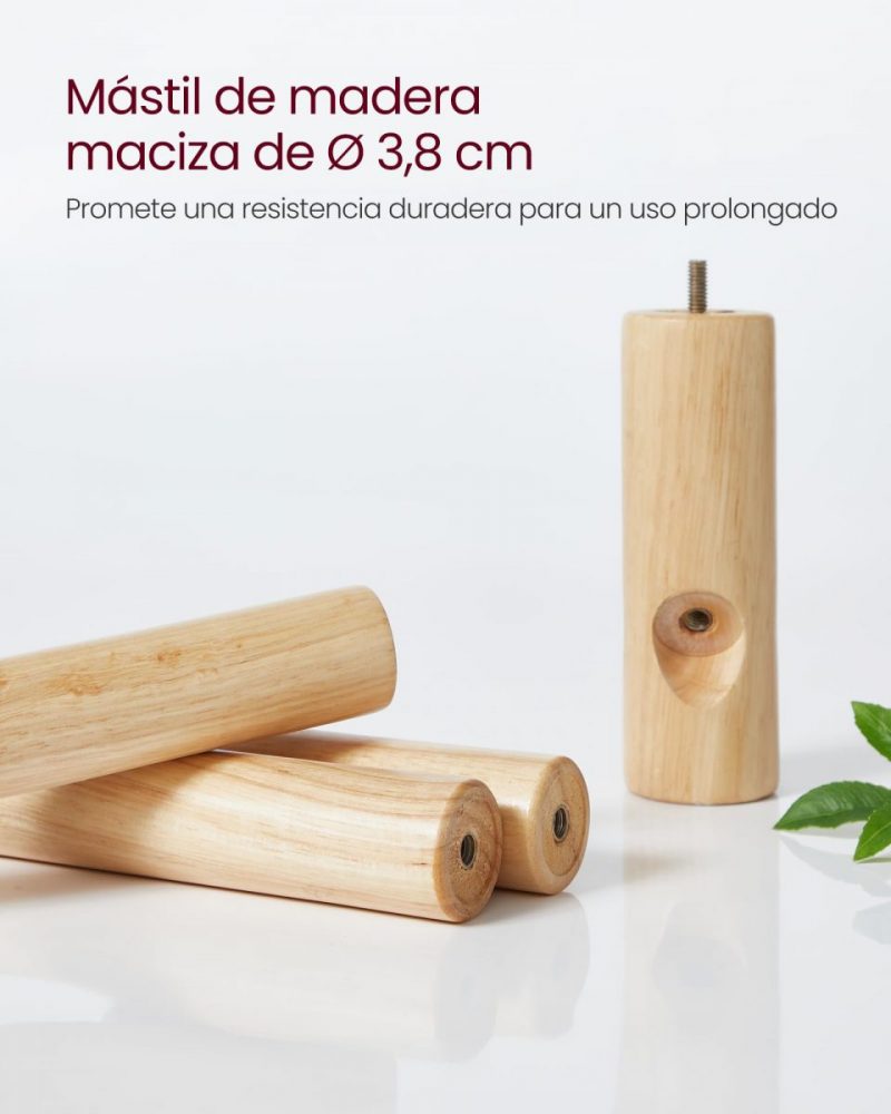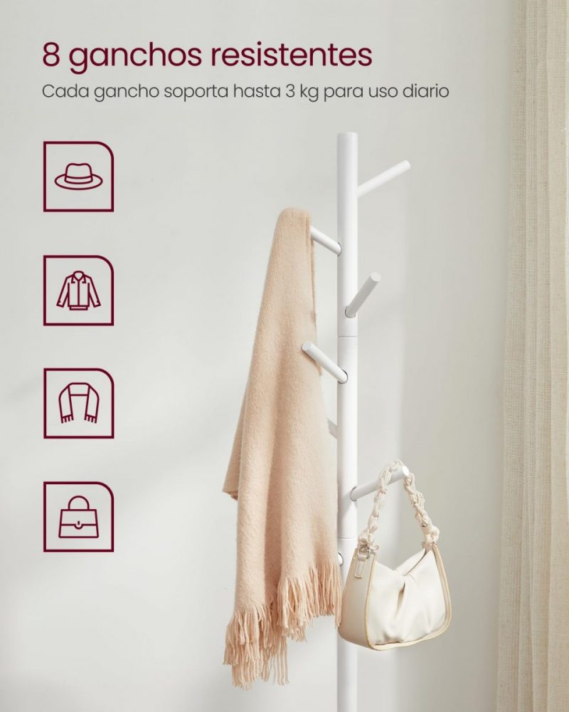 Perchero de pie de madera maciza, 8 ganchos, altura ajustable