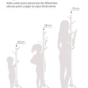 Gracias a su diseño de 3 secciones de la altura, que te permite determinar la altura del perchero según sea necesario. Para los niños, sólo utiliza 1-2 secciones; para los adultos, utiliza 3 secciones.